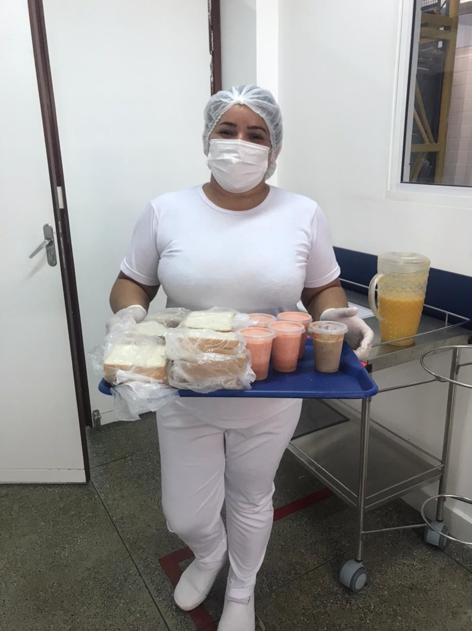 Pacientes do Complexo fazem seis refeições/dia, ou seja, desjejum (7h), colação (9h), almoço (12h), lanche (15h), jantar (18h) e ceia (21h). Funcionários, atualmente, têm cinco refeições/dia, a saber: desjejum (6h30 às 7h), colação (será também incluso), almoço (11h30 às 13h), lanche (15h às 16h), jantar (20h às 21h) e ceia (23 às 24h). Os acompanhantes têm o desjejum às 7h, o almoço de 11h as 11h30 e o jantar das 19h às 20h. “Por essa quantidade de refeições, você imagina a movimentação da cozinha e copa para assegurar pontualidade nos horários e qualidade das refeições servidas. Nutrição é um serviço fundamental em qualquer local, mas numa instituição hospitalar, onde a dieta é imprescindível para recuperação da saúde, é mais ainda”, reitera Luciana. Ela lembra que a migração do sistema terceirizado para a autogestão não comprometeu a continuidade do serviço porque a direção se programou com compras emergenciais para que não ocorresse nenhuma interrupção ou comprometimento do serviço e que ao longo do ano serão incorporado um cardápio especial em datas de celebração, a exemplo do dia da Mulher, das Mães, no Natal, etc.