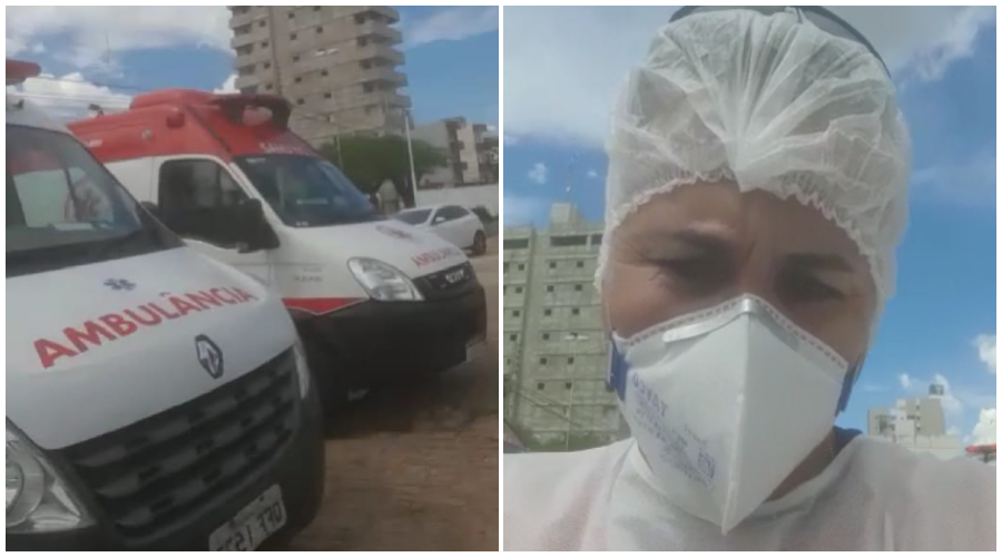 Na oportunidade, o profissional de saúde relata o seu esforço pessoal e mostra o pátio do hospital cheio de ambulâncias do SAMU e de outros serviços de saúde, por conta da grande movimentação de pacientes.