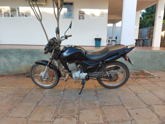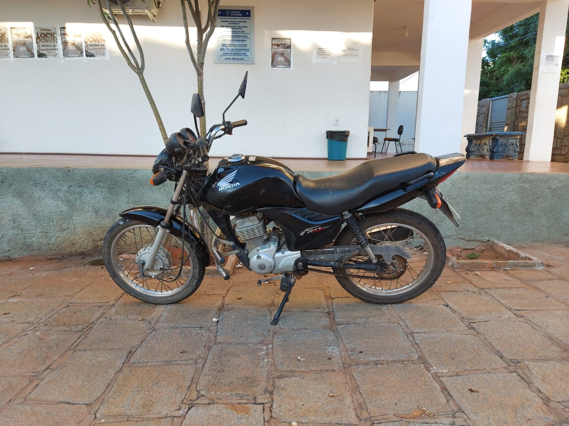 Em poucos instantes, após denúncias, a motocicleta foi localizada por trás do Ginásio O Rivaldão, em uma residência abandonada.