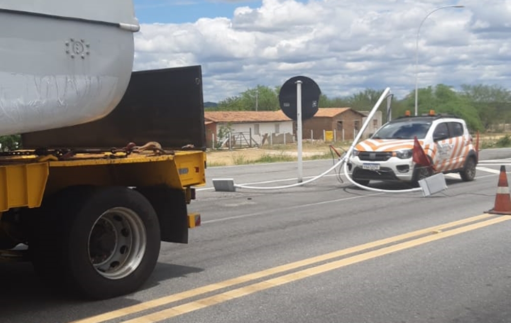 Na manhã deste domingo (21), um poste de iluminação da Unidade Operacional da PRF, em São Mamede, na Região Metropolitana de Patos, foi danificado por uma colisão de uma carreta transportando carga indivisível de componente de uma usina eólica pelas dimensões que ultrapassam os níveis normais de largura e altura. Essa combinação colidiu com poste e arrastou os fios da rede elétrica iluminação noturna da Unidade Operacional da PRF em São Mamede.