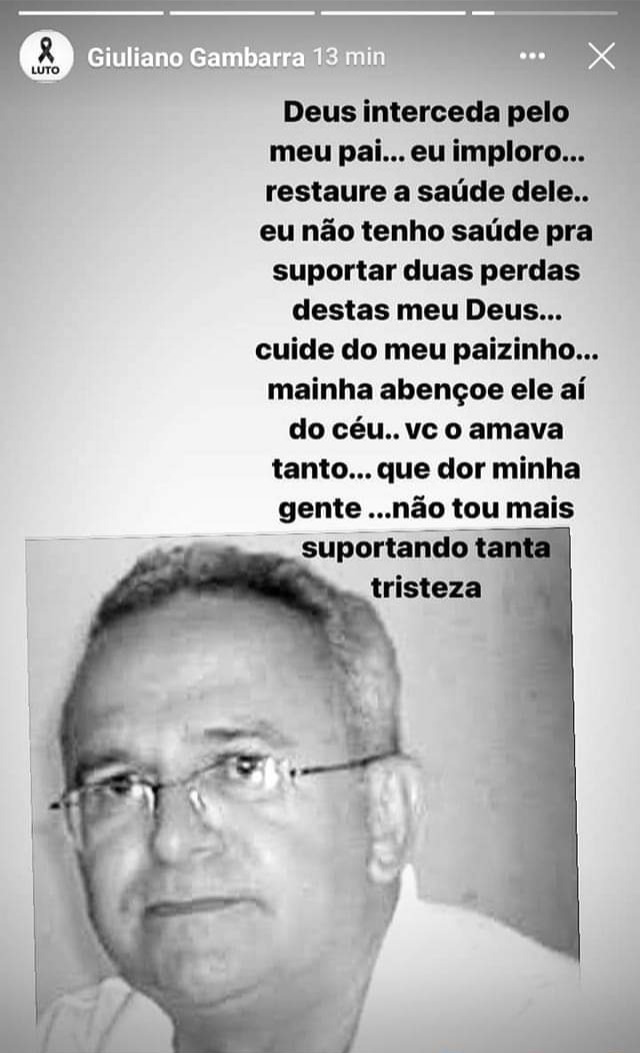 Nas redes sociais, seu filho pediu oração e mostrou certo desconsolo e desespero com a situação porque passa a família.