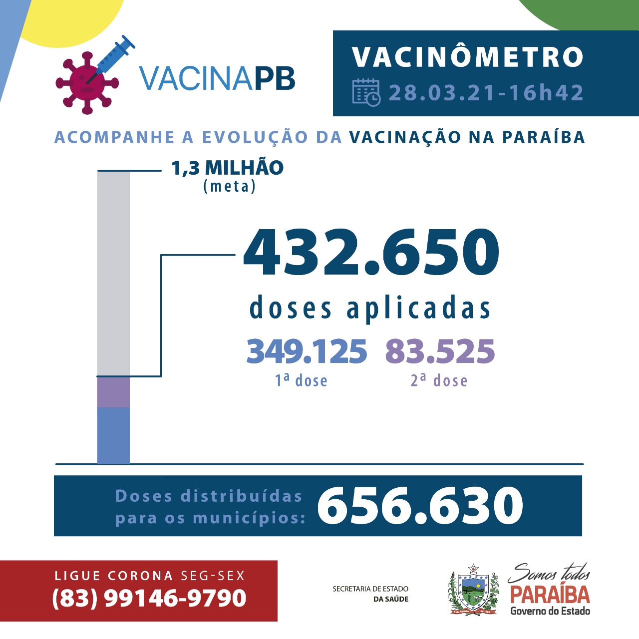 Os dados epidemiológicos com informações sobre todos os municípios e ocupação de leitos estão disponíveis em: www.paraiba.pb.gov.br/coronavirus.