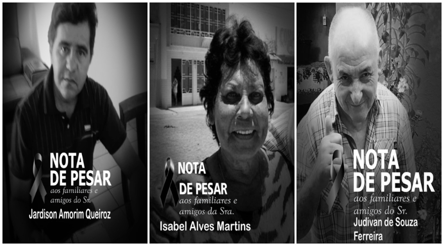 Por meio das redes sociais, a Prefeitura Municipal de Teixeira, na Região Metropolitana de Patos, emitiu notas de pesar lamentando a morte dos teixeirenses Jardison Amorim Queiroz, Isabel Alves Martins e Judivan de Souza Ferreira, que morreram de Covid-19 neste domingo (28).