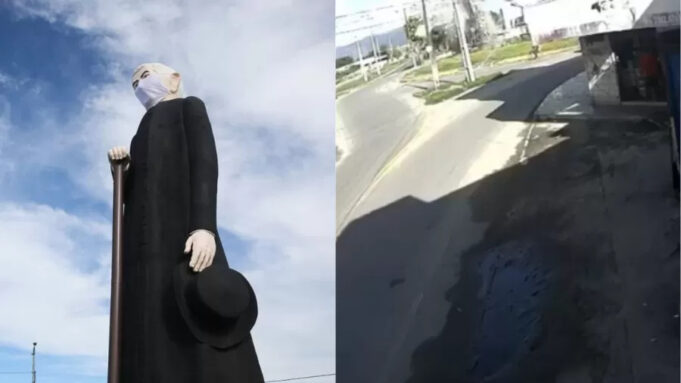 “Rapaz, o susto foi grande. Eu ouvi um estrondo e a poeira já subiu. Só percebi que era a estátua que caiu depois que encostei o carro”, disse o professor Flávio Barreto, uma das pessoas que testemunhou a queda da estátua.