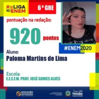 A Escola Estadual Professor José Gomes Alves, em Patos, fez bonito na redação do ENEM 2020, cujo tema foi “O estigma associado às doenças mentais na sociedade brasileira”. Vários alunos tiraram excelentes notas.
