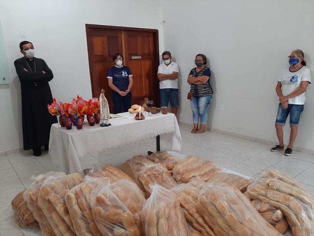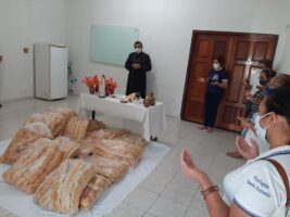 Com a esperança de que haja pão em todas as mesas, Dom Eraldo abençoou os alimentos e motivou um gesto de partilha onde “todos comeram do mesmo pão.” Em seguida os 1. 500 pães foram entregues as Pastorais Sociais, que por sua vez, possam distribuir as famílias carentes por elas acompanhadas. No final do encontro, o pastor diocesano agradeceu a equipe de voluntários pela missão e os desejou uma feliz e abençoada semana santa.