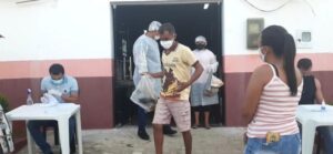 Os alimentos foram distribuídos na zona urbana e rural e durante a entrega foi observado o distanciamento, uso de máscara e álcool gel.
