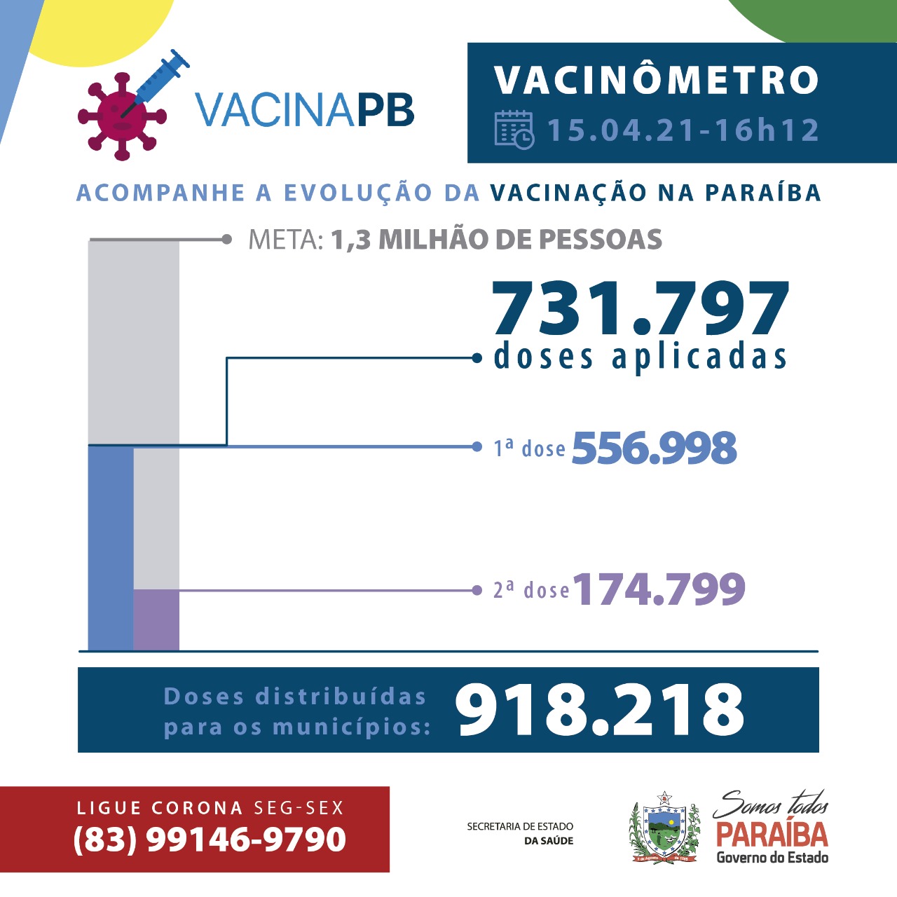 Foi registrado no sistema de informação SI-PNI a aplicação de 731.797 doses. Até o momento, 556.998 pessoas foram vacinadas com a primeira dose e 174.799 com a segunda dose da vacina. Um total de 919.380 doses já foram distribuídas.