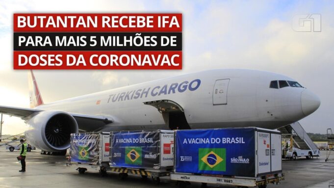 Em março, o Butantan recebeu uma remessa de 8,2 mil litros de IFA, correspondente a cerca de 14 milhões de doses. Outros 11 mil litros de insumos chegaram ao país em fevereiro.
