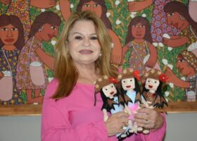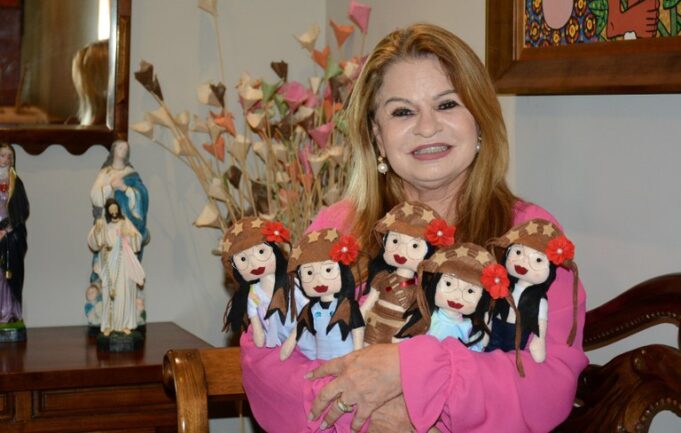 A primeira-dama do estado, Ana Maria Lins, foi presenteada, nesta sexta-feira (30), por Cynthia Almeida, diretora da Penitenciária de Reeducação Feminina “Maria Júlia Maranhão”, com bonecas de feltro produzidas pelas reeducandas e artesãs do projeto Castelo de Bonecas, inspiradas na paraibana Juliette Freire, que participa da edição 21 do reality show Big Brother Brasil (BBB).