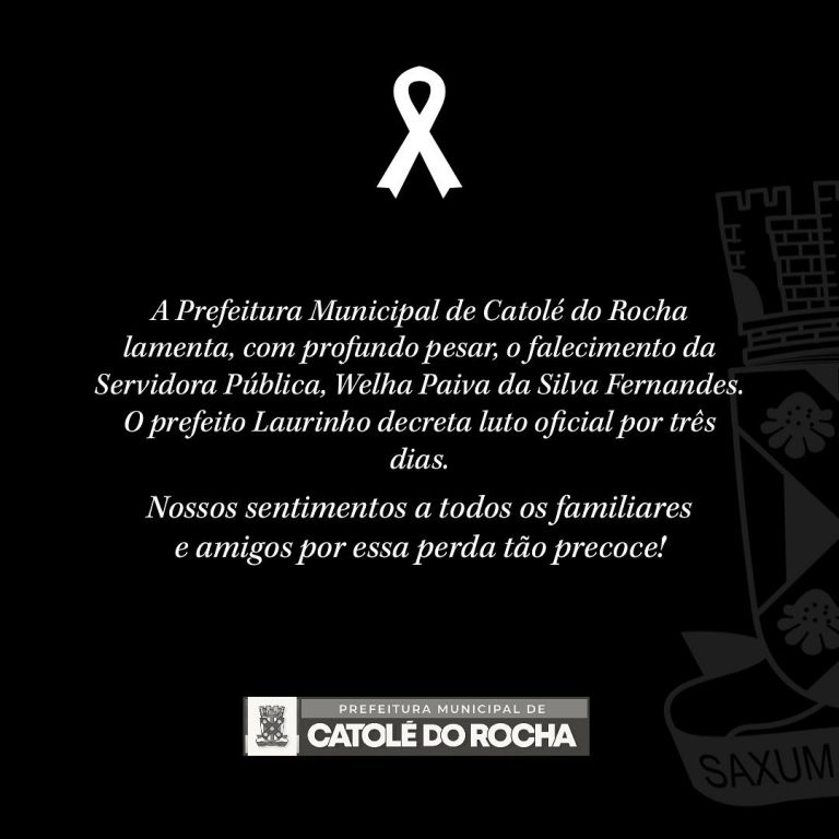 O prefeito de Catolé do Rocha, Laurinho, decretou luto oficial por três dias em virtude do falecimento de Welha, que era servidora pública municipal.