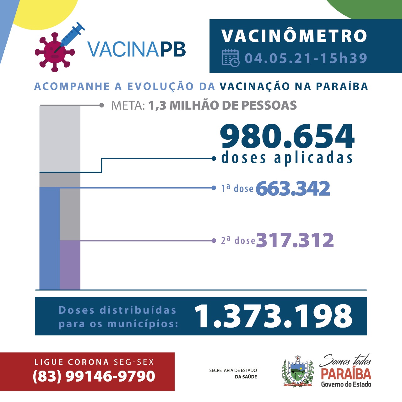 Foi registrado no sistema de informação SI-PNI a aplicação de 982.893 doses. Até o momento, 664.468 pessoas foram vacinadas com a primeira dose e 318.425 com a segunda dose da vacina. Um total de 1.373.198 doses já foram distribuídas.