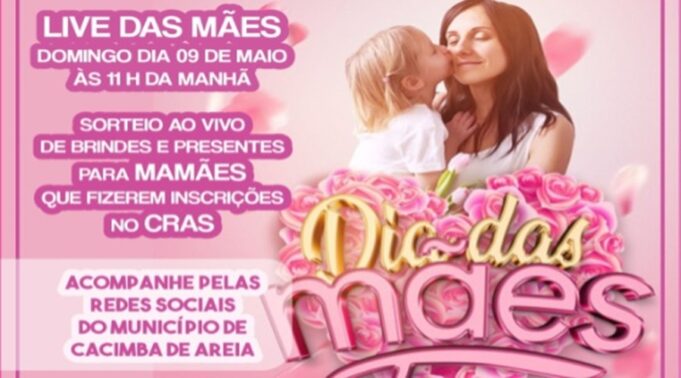 A Prefeitura de Cacimba de Areia, na Região Metropolitana de Patos, através da Secretaria de Desenvolvimento Social e o CRAS, estão nos preparativos, para uma grande homenagem ao Dia das Mães. De acordo com a Secretária Paloma Paloma Ferreira, o evento será transmitido através de uma live ao vivo, nas redes sociais do município. Paloma adiantou que a live terá apresentações artística, homenagens às Mães e a realização do sorteio.