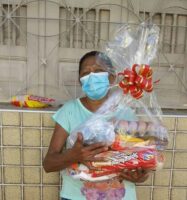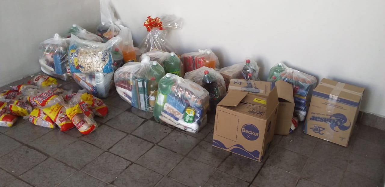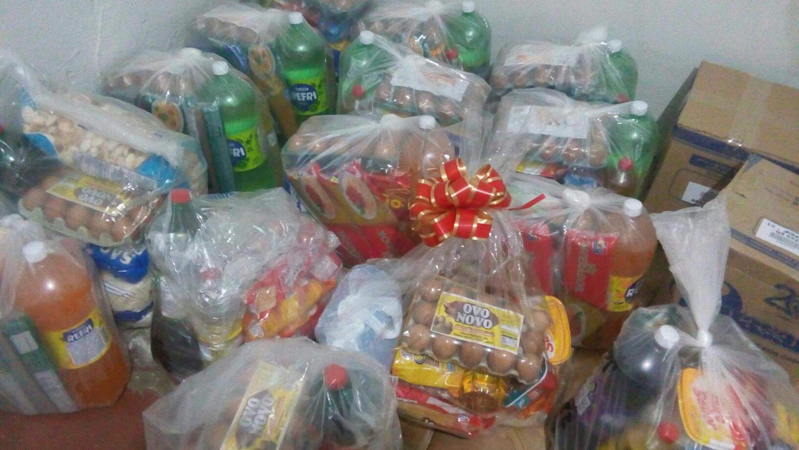 Foram entregue várias cestas básicas, todas acompanhadas de um quilo de frango para vocês fazerem a ceia do Dias das mães.