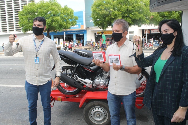 “Nós estamos apresentando às pessoas as duas motos que a Prefeitura adquiriu para o sorteio de quem pagar o seu IPTU. Nós iremos fazer o sorteio de uma moto CG no início de junho para quem pagar com a cota única com desconto de 25%, e a outra moto, uma Honda Pop, faremos o sorteio em setembro quando todos pagarem o IPTU”, explicou o prefeito, Nabor Wanderley.