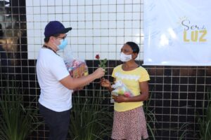 Aconteceu último sábado, 08/05, a ação do Dia das Mães do Projeto Ser de Luz para mães da comunidade Cangote do Urubu, em Patos. Foram entregues 40 cestas básicas e 40 kits de higiene pessoal, além de itens de maquiagem e bijuterias. As 40 mães beneficiadas também receberam uma rosa como simbologia ao Dia das Mães. “Entregamos 40 cestas básicas e 40 kits de higiene pessoal e beleza, além de 1 rosa para cada mãe”, disse o diretor presidente do projeto, Geovanny Lima.