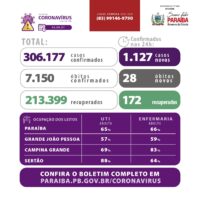 Os dados epidemiológicos com informações sobre todos os municípios e ocupação de leitos estão disponíveis em: www.paraiba.pb.gov.br/coronavirus.