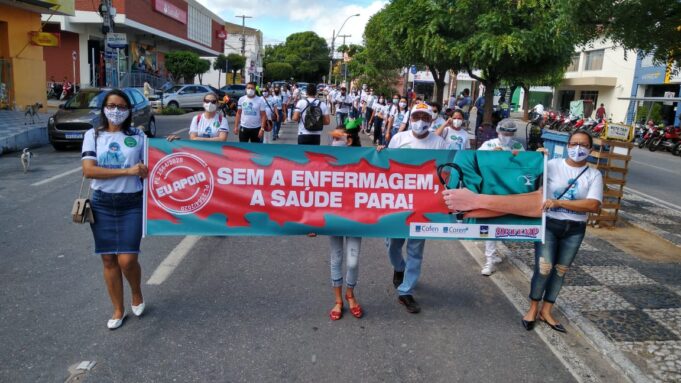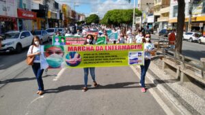 O sindicalista e vereador Zé Gonçalves (PT), participou na manhã desta quarta feira, dia 12 de maio, de uma caminhada dos profissionais da enfermagem em Patos, que estão na luta pela aprovação do Projeto de Lei 2564/2020, que trata do piso nacional para enfermeiros, técnicos de enfermagem, auxiliares de enfermagem e parteiras em todo o país.