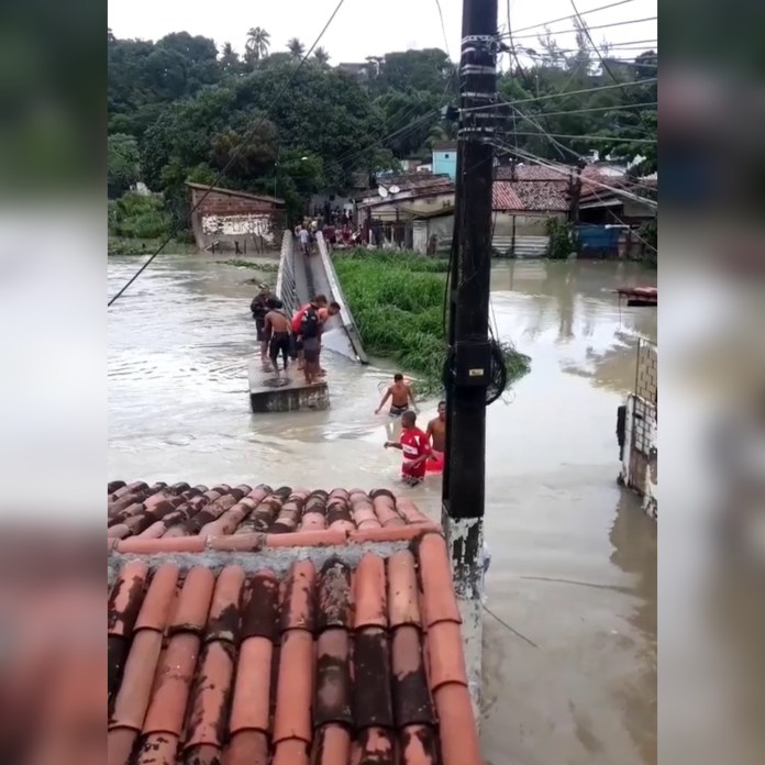 A ponte que liga as comunidades São Rafael e Padre Hildon Bandeira, entre os bairros Castelo Branco e Torre, desabou nessa quinta-feira (13), após a cheia do Rio Jaguaribe.