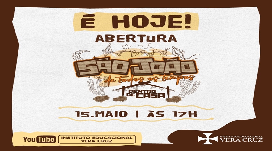 O São João Solidário será transmitido ao vivo pelo YouTube Instituto Educacional Vera Cruz.