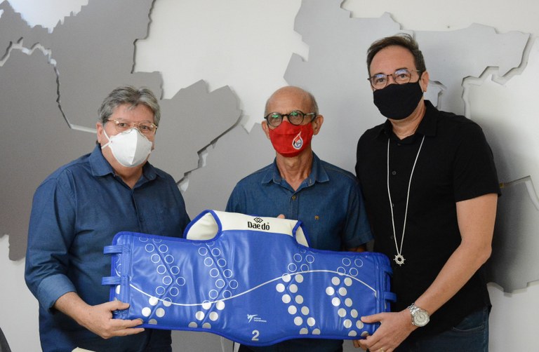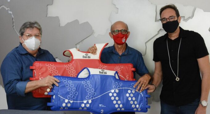 O governador João Azevêdo entregou, nesta segunda-feira (24), dois coletes eletrônicos ao presidente da Federação Paraibana de Taekwondo Olímpico, mestre Tomaz Azevedo, que serão utilizados pelos medalhistas em Jogos Pan-Americanos, Edval Pontes, o Netinho, e Talisca dos Reis, que irão competir este ano nas Olimpíadas de Tóquio e no Pan-Americano, no México, respectivamente.