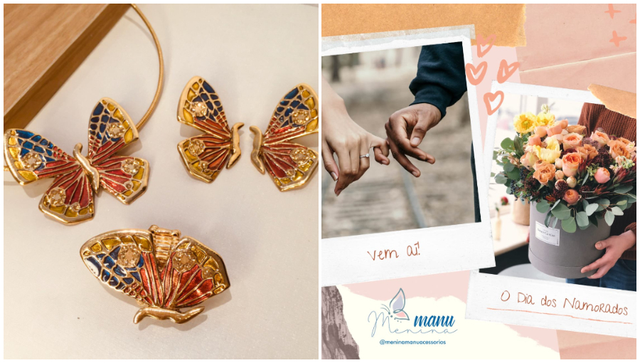 A loja Menina Manu, localizada na Rua Rui Barbosa, 388, em frente a Mithus Jóias, no centro de Patos, está com uma ação promocional de um kit para o Dia dos Namorados (brinco, colar e anel).