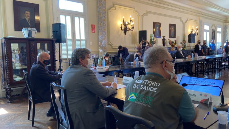 O governador João Azevêdo se reuniu, neste sábado (26), no Palácio da Redenção, em João Pessoa, com o ministro da Saúde, Marcelo Queiroga, ocasião em que foi apresentada a proposta de desenvolver na Paraíba um projeto piloto que visa à reestruturação da política de saúde pública para a rede de urgência e emergência no país e discutida a possibilidade de realizar uma vacinação em massa da população de Sousa, no Sertão da Paraíba.