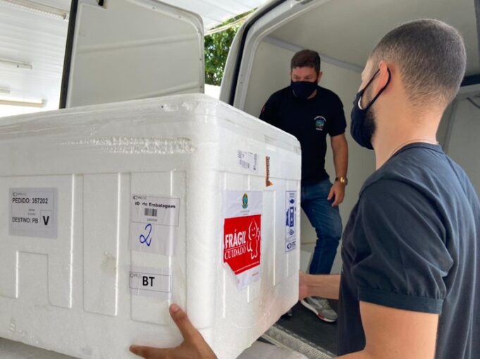 A Secretaria de Estado da Saúde (SES) distribui, nesta quinta-feira (1), 100.367 doses de vacina contra Covid-19. Deste total, 21.102 são Pfizer/Comirnaty e 79.265 Astrazeneca/Fiocruz. Os imunizantes distribuídos nesta 28ª pauta são destinados para todos os 223 municípios paraibanos, que deverão acatar o critério único de vacinação por idade.