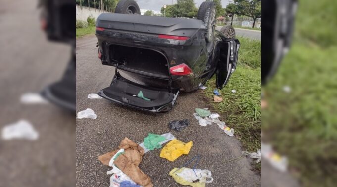 Um motorista perdeu o controle da direção e capotou um veículo na madrugada deste sábado (3), na Avenida Hilton Souto Maior, no bairro de Mangabeira, em João Pessoa.