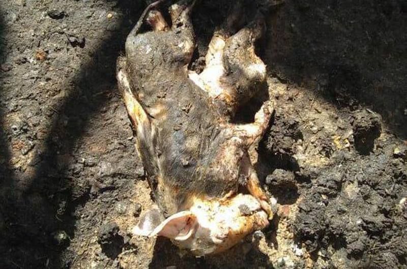 O animal possuía o segundo corpo embaixo da barriga, duas pernas e um braço em cima das costas, além da cabeça, também, em por sobre as costas.
