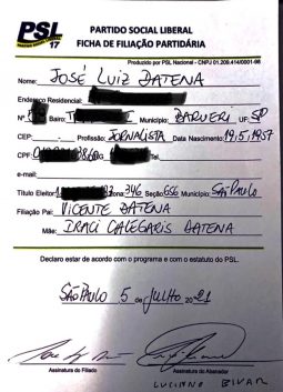 O Antagonista recebeu uma cópia da ficha de filiação: