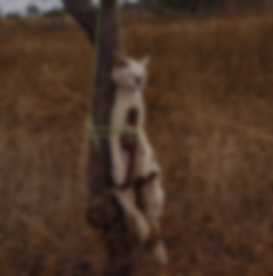 Uma cena dantesca foi flagrada em Sousa, no Sertão da Paraíba. Um gato foi encontrado morto e amarrado a uma árvore, com uma garrafa de cerveja e um cigarro, na zona rural do município.