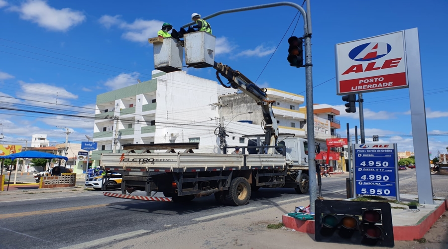 A Superintendência de Trânsito e Transportes realizou neste domingo, 11, melhorias na sinalização semafórica, vertical e horizontal do cruzamento das ruas do Prado e Cícero Bernardo, que fica entre os bairros Liberdade e Maternidade. As melhorias consistem na mudança dos semáforos de lâmpada por LED, como também a alteração do tempo do semáforo para quatro tempos.