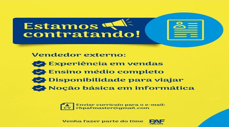 O PAF Master está com vagas abertas para vendedor externo em Patos e região.
