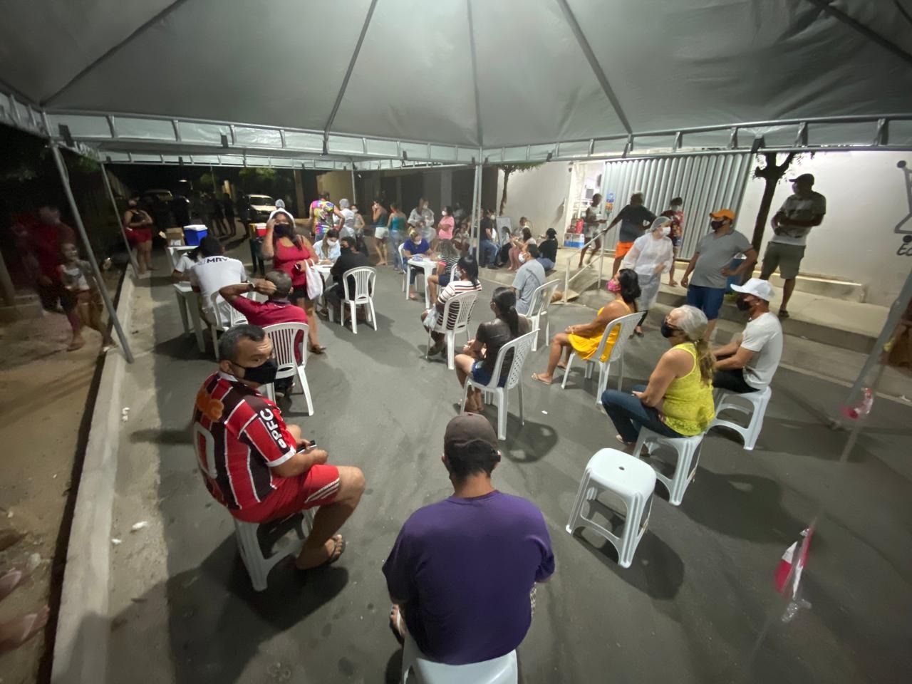 As medidas de prevenção e controle do novo coronavírus na cidade de Patos seguem de forma descentralizada. Na noite dessa terça-feira (20), a Prefeitura realizou mais uma ação de testagem e vacinação contra a Covid-19, desta vez no Conjunto dos Sapateiros, na área sul da cidade.