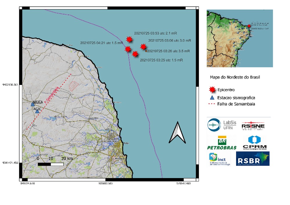 “Os eventos foram registrados pelas estações sismográficas localizadas no município de João Câmara, que contém duas estações atualmente, e uma estação sismográfica no município de Riachuelo”.