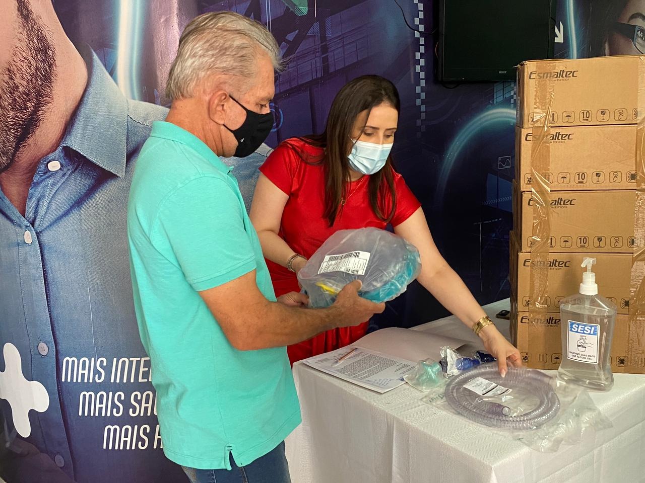 O prefeito Nabor Wanderley e o secretário de Saúde, Leônidas Dias, receberam os equipamentos da superintendente do SESI-PB, Geisa Brito.