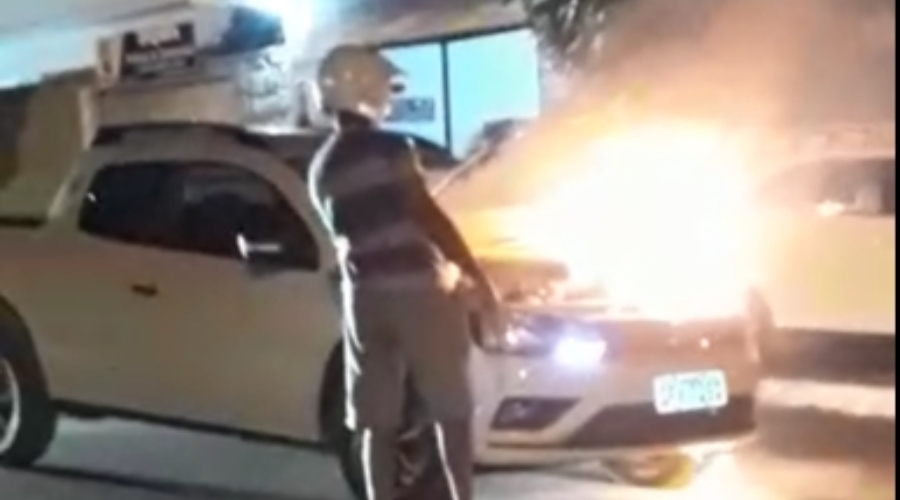 Um carro pegou fogo na noite desta quarta-feira, dia 28 de julho, no bairro Jardim Queiroz, em Patos, próximo ao Batalhão de Polícia Militar. O veículo vinha trafegando normalmente, quando as chamas começaram a surgir no capô.