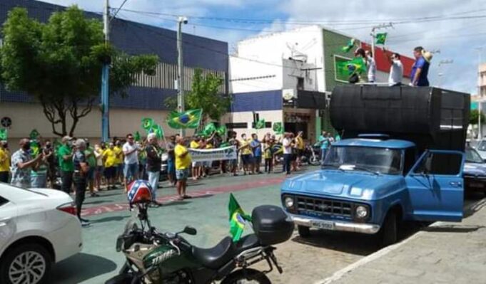 Em cima do carro de som que percorreu várias ruas da cidade de Patos na manhã deste domingo, dia 01, estavam o aposentado e coordenador do curso de direito do Centro Universitário de Patos (UNIFIP), Ramonilson Alves, e o vereador Josmá Oliveira (Patriota).