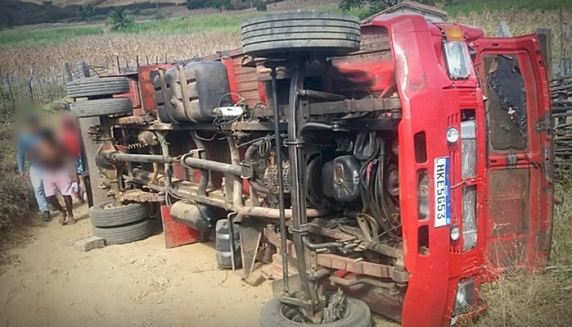 De acordo com informações de um morador da localidade, o caminhão perdeu forças na subida de uma ladeira e acabou tombando.