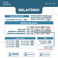 Desde o começo da pandemia, Patos registrou o total de 16.402 pessoas infectadas pelo vírus, 250 óbitos e 16. 040 recuperados.