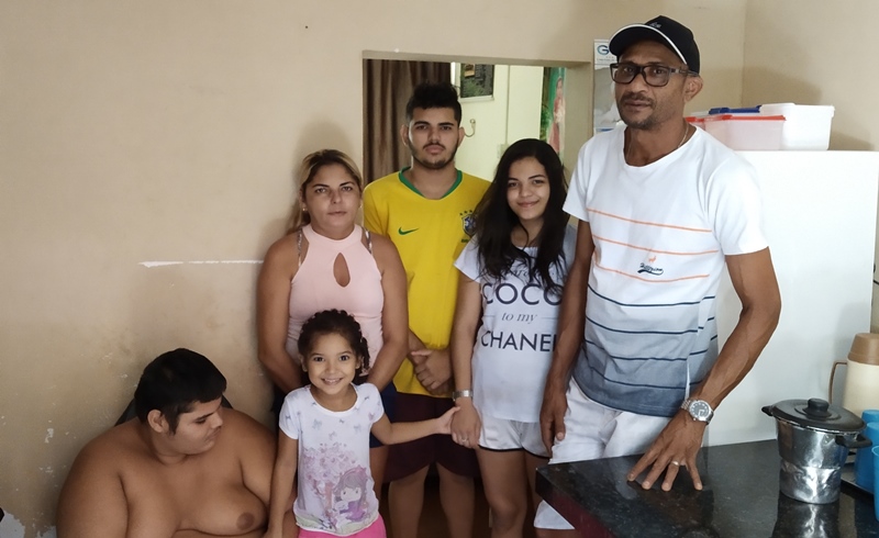 A família é composta por 4 filhos, sendo um deles especial com laudo de autismo e transtornos mentais. O garoto de 19 anos não fala, é hiperativo e tem que estar sendo cuidado sempre diante das dificuldades de higiene e medicamentos necessários para evitar mais danos a sua saúde. Os outros três filhos têm 05,18 e 15 anos. O de 18 anos trabalha, mas a renda é pouca para tantas necessidades em casa.