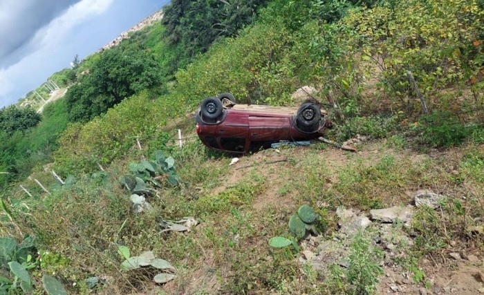 Um carro capotou na tarde desta segunda-feira (9), durante uma fuga de suspeitos de arremessar drogas para o Presídio do Serrotão, em Campina Grande.