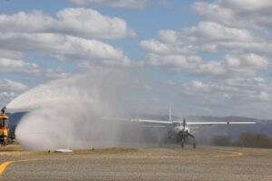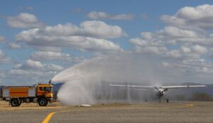João Azevêdo desembarcou no Aeroporto Brigadeiro Firmino Ayres, em Patos, às 14h10, vindo do Aeroporto Internacional de Recife, onde também ocorreu solenidade de inauguração da chegada da Azul ao Sertão paraibano, com o batismo da aeronave pelo Corpo de Bombeiros.
