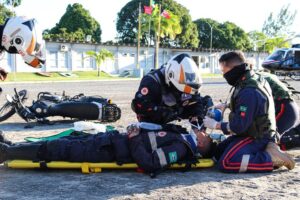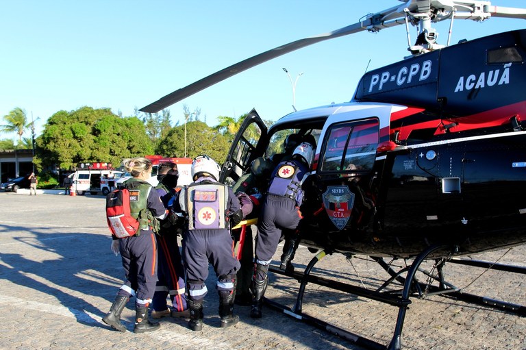 A Secretaria da Segurança e da Defesa Social da Paraíba, por meio do Grupamento Tático Aéreo, e o Serviço de Atendimento Móvel de Urgência da Prefeitura de João Pessoa realizaram uma demonstração do trabalho de resgate e transporte aeromédico de urgência e emergência, na tarde desta segunda-feira (16). A simulação aconteceu para celebrar o termo de cooperação entre o GTA e o Samu, que atende aos 64 municípios que compreendem a macrorregião de cobertura da central de regulação do Samu Regional João Pessoa.