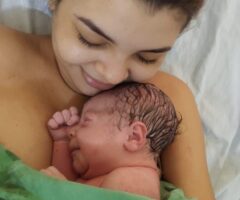 Logo após o parto, acontece a “Hora Dourada” que consiste no contato pele a pele entre mãe e bebê e incentivo à amamentação na primeira hora de vida. Segundo a chefe do Núcleo de Enfermagem da Maternidade Peregrino Filho, Milene Nunes, esse momento fortalece o vínculo e ajuda a mãe na produção de ocitocina, um hormônio que estimula a descida do leite. “O vínculo afetivo é criado a partir desse ‘hormônio do amor’ e o leite materno além de consolidar essa conexão, ainda oferta inúmeros benefícios para o binômio mãe e bebê”.