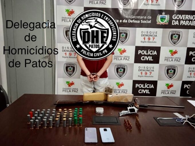 Com o suspeito, no momento do cumprimento do mandado de prisão, ainda foi encontrado uma espingarda calibre 12, um revólver calibre .38, várias munições de calibre 12, .38 e .40, além de quase 2Kg de maconha prensada. Após a conclusão das diligências, o preso foi autuado em flagrante por tráfico de drogas, associação para o tráfico e posse ilegal de arma de fogo, em seguida, encaminhado a penitenciária local, por força do mandado de prisão, onde está a disposição da justiça.