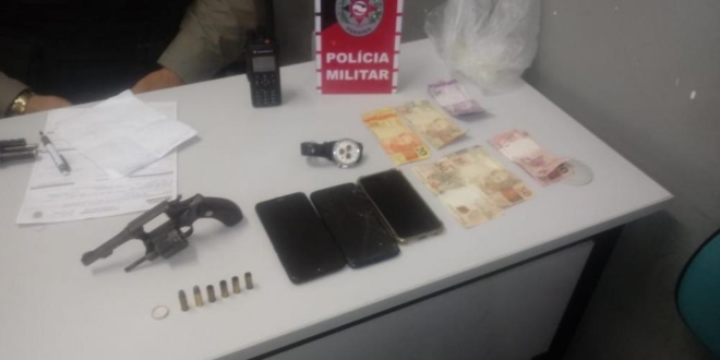 Com o suspeito foram encontrados um revólver, mais de 30 munições, celulares, dinheiro e joias, além da moto que ele estava pilotando no momento do confronto.