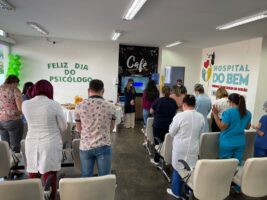 Ele é um profissional que busca entender melhor o outro, tratar determinadas dificuldades, cuidar da saúde mental dos colaboradores e, no nosso caso, principalmente, dos pacientes. Estamos falando do psicólogo, esse profissional que ajuda a aperfeiçoar o ambiente de trabalho e, neste 27 de Agosto, quando se comemora o Dia do Psicólogo não poderíamos deixar de parabenizar a equipe do Complexo Hospitalar Regional Deputado Janduhy Carneiro de Patos (CHRDJC). E a comemoração da data não passou em branco em nossa unidade. As sete psicólogas que integram a equipe do Hospital foram parabenizadas pelo seu Dia num café da tarde, realizado na última quarta-feira (25). A data foi antecipada para permitir que todas elas estivessem presentes na comemoração realizada no hall do Hospital do Bem.