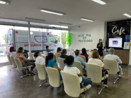 Na ocasião, Pryscilla mostrou as melhorias implantadas no serviço de Psicologia, com destaque para a nova sala do setor, apresentou planilhas de atendimentos, assim como os novos formulários de atendimento, revisão e atualização de Protocolos Operacionais Padrão, além do Manual de normas e rotinas da atividade. No final, toda equipe de Psicologia recebeu uma lembrança para marcar a data entregue pelo diretor geral da unidade, Francisco Guedes.